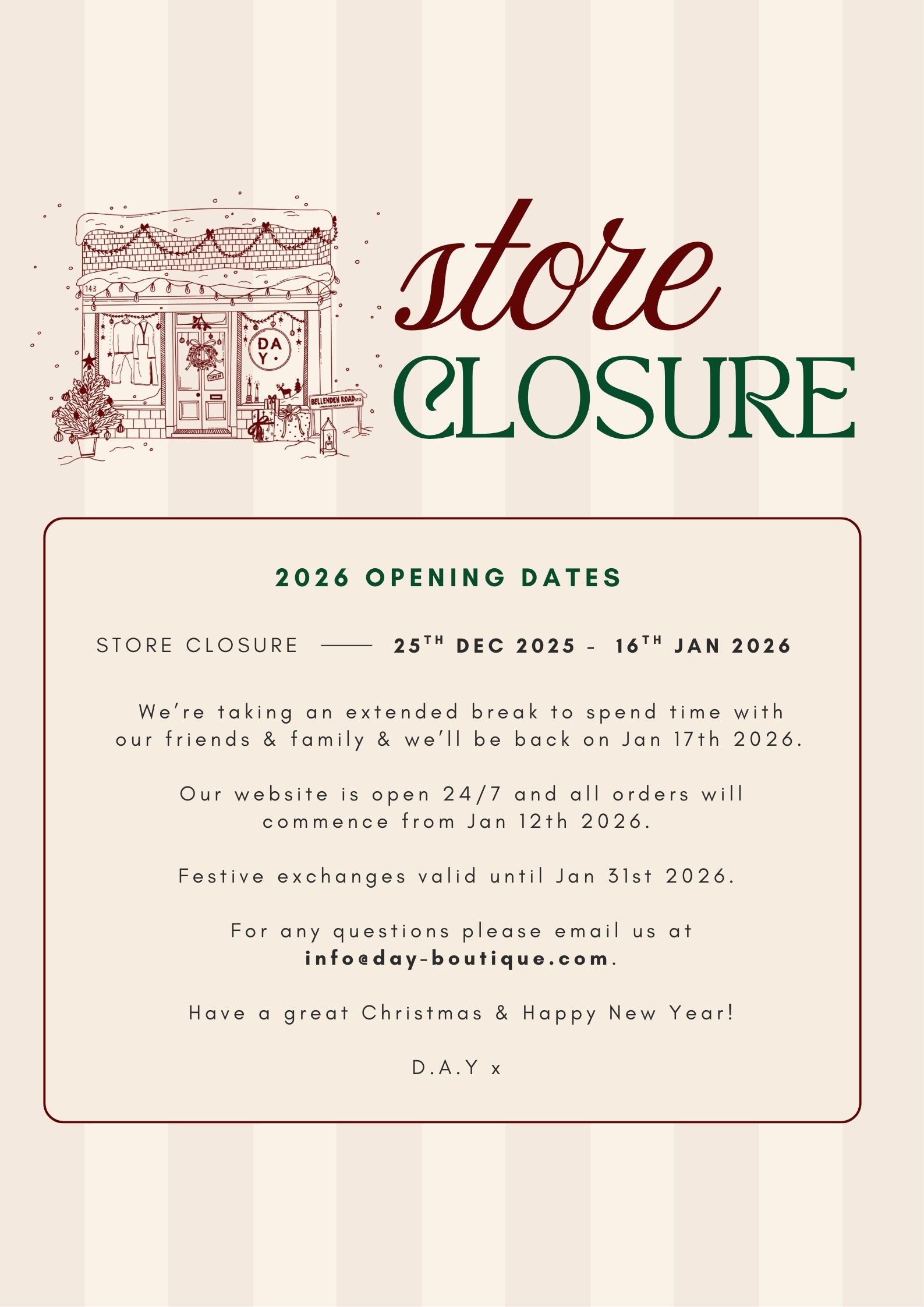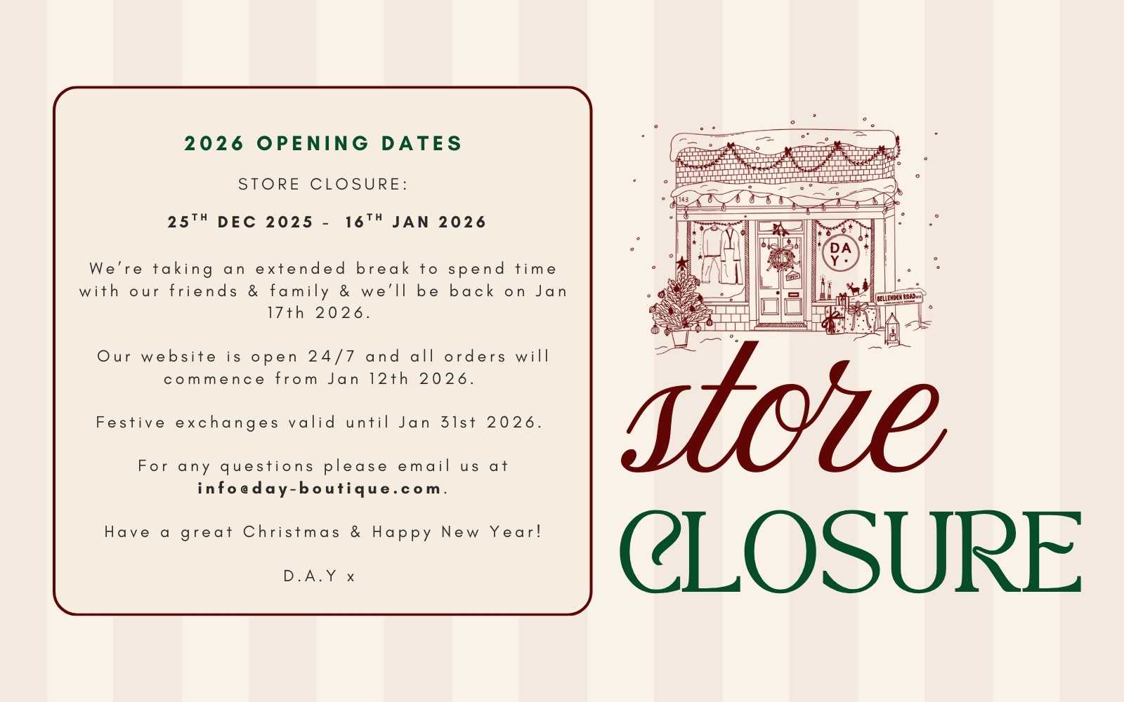 STORE CLOUSURE: 25TH DEC 2025 - 16TH JAN 2026